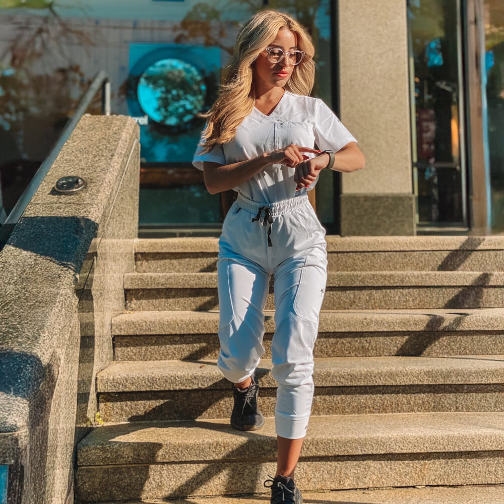 - The Angie top is a looser fit than traditional scrub tops. We typically recommend sizing down. For example, if you typically wear a size medium in traditional scrub tops, you would order a size small in the Angie top.